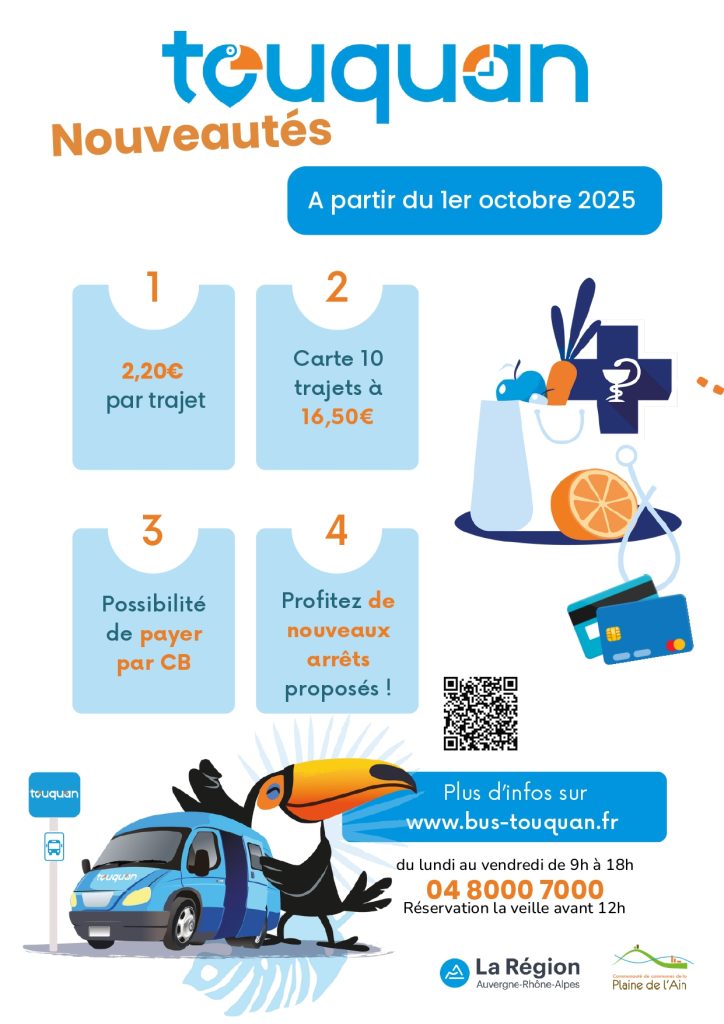 Touquan est un service de transport à la demande, c’est-à-dire avec réservation obligatoire. Le service est pensé autour de bassins de vie, afin de permettre à chacun de se rendre sur ses lieux de rendez-vous habituels (médical, courses, train …). Le Montellier est concerné par le secteur de Meximieux. Cependant, certains arrêts sont accessibles en dehors de la zone : gares SNCF, EHPAD, pôles médicaux, France Travail.